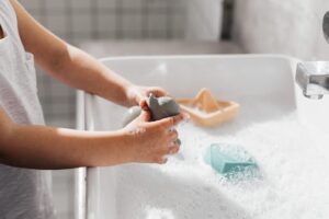 Ready for this secret? Disinfecting plastic bath toys can be as simple as throwing them in the dishwasher! The machine’s powerful jets and high temperature effectively clean and kill germs on the exterior of the toy. Just make sure the toy is made from dishwasher-safe materials.